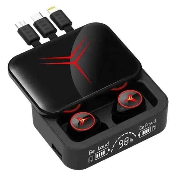 یکی از بزرگترین دغدغههای کاربران، همراه داشتن کابلهای مختلف است. کیس شارژ M88 Plus به سه کابل متصل (Built-in Cables) مجهز شده است: کابل لایتنینگ (آیفون)، Type-C و Micro-USB. این یعنی شما میتوانید بدون نیاز به حمل کابل اضافی، هم کیس را شارژ کنید و هم از کیس برای شارژ گوشی خود استفاده نمایید.